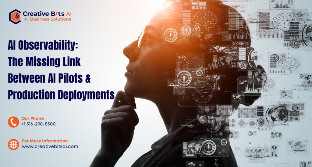 AI observability is the foundation of production-grade AI systems at Creative Bits AI. It is not about being smart that generates value, but visibility. All of our AI systems are designed with timely versioning, drift identification, and performance-based monitoring baked in since the first day, so that it keeps transparency and accountability at scale.